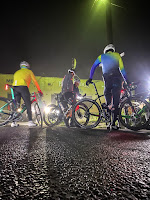 Troy, Bruce, Tina, PistolPete and Kreeky had gathered in not so welcoming weather (feels like -0.1), Pistol and Emil yet again doing the first shift south. The serene start signaled someone's absence. Rocket's lack of headlight volts forced his berth at the back while Emil and Bruce led the lines east. That lack of temperature gripped the lungs like a vice, but I joined the advance line anyway; it'd probably hurt even more at the front but then everyone gets that pleasure. Tina chose to keep Rocket company in the caboose while I followed Troy toward the business end. Kreeky behind was my insurance to survive part two. Calm conditions favored a reasonable turn when I paired with Troy at River Rd's dip so an aim to reach the quarter horse fence seemed achievable (but I reckon someone shifted that fence further. Nothing but darkness lay ahead while the horsepower faded). Troy complied to my call for an early roll (no "full blocks" pressure today), Kreeky hopefully the compliant one for the next bit.